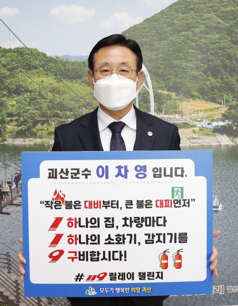 [국회의정저널] 충북 이차영 괴산군수는 9일 소방시설 설치의 중요성을 강조하는 ‘119 릴레이 챌린지’에 동참했다.