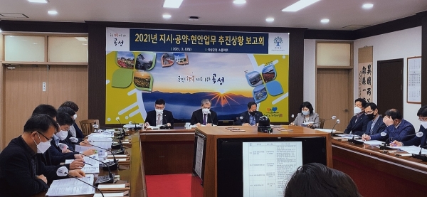 곡성군은 공약사항들의 이행현황과 문제점을 점검해 가시적인 군정 성과를 창출하기 위해 정기적으로 보고회를 열고 있다.