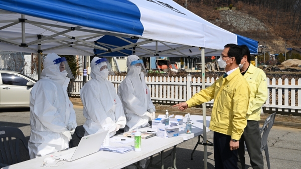[국회의정저널] 조병옥 음성군수가 10일 외국인 근로자 대상 코로나19 선제검사 현장점검에 나섰다.