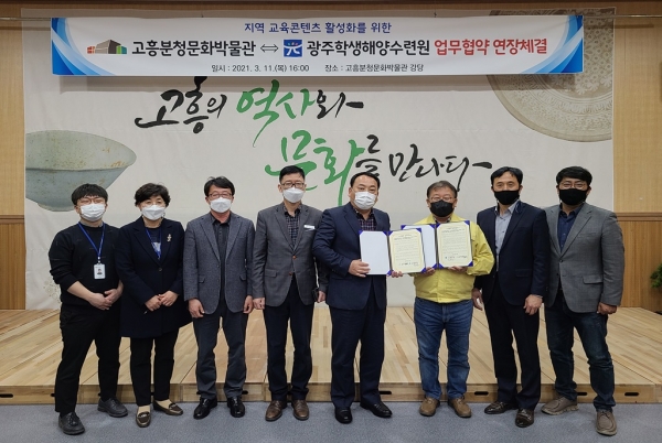 [국회의정저널] 고흥군은 지난 11일 고흥분청문화박물관 2층 강당에서 고흥분청문화박물관과 광주학생해양수련원이 ‘지역 교육콘텐츠 활성화를 위한 교육 업무협약’을 연장하는 체결식을 가졌다.