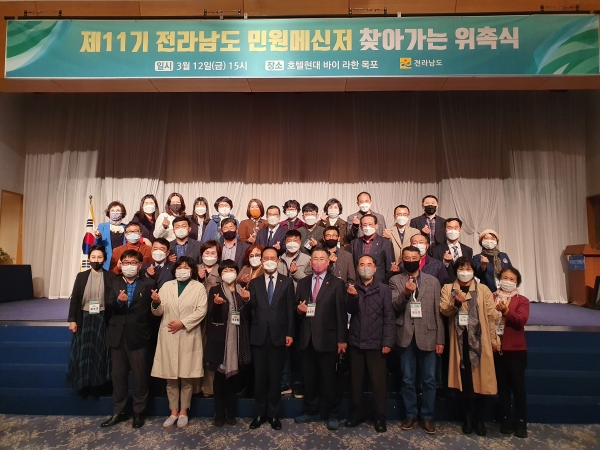 전남도는 지난 2월 동부권 62명을 시작으로 3월 5일 남부권 67명, 10일 북부권 57명, 12일 서부권 54명의 위촉식을 마지막으로 11기 민원메신저 ‘찾아가는 위촉식’을 모두 마무리했다.