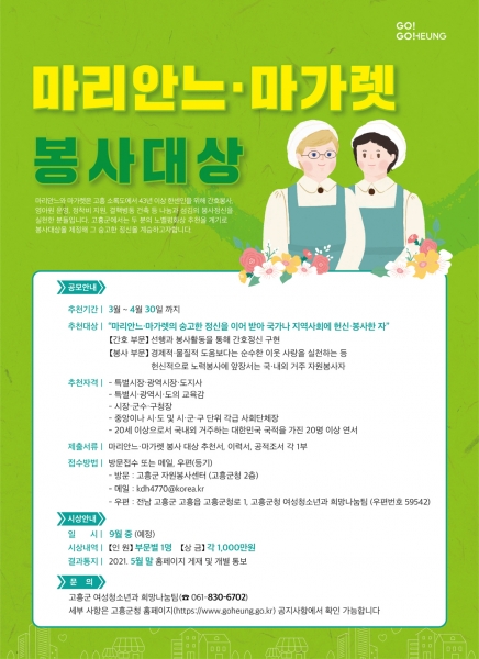 고흥군,‘마리안느·마가렛 봉사대상’후보자 추천 공모