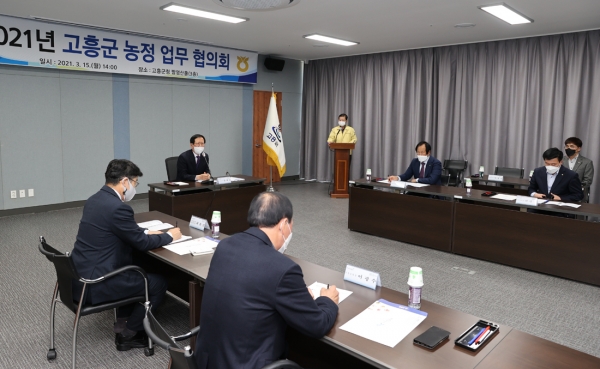 [국회의정저널] 고흥군은 지난 15일 농축업 발전 방안 및 당면 농정 현안 업무의 효율적인 추진을 위해 농협중앙회 고흥군지부장 및 8개 지역 농·축협장이 한자리에 모여 ‘2021년 고흥군 농정 업무 협의회’를 개최했다고 밝혔다.