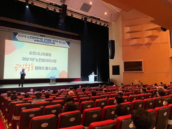 순천시 노인일자리 전담기관인 순천시니어클럽은 지난 16일부터 오는 19일까지 4일간 순천문화예술회관 대극장에서 어르신 1,200명을 대상으로 교육을 실시한다.