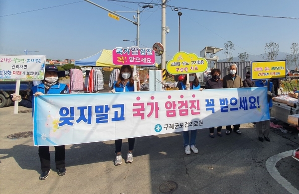 [국회의정저널] 구례군은 18일 국가 암검진 수검률 향상과 심뇌혈관질환을 예방하기 위해 캠페인을 실시했다.