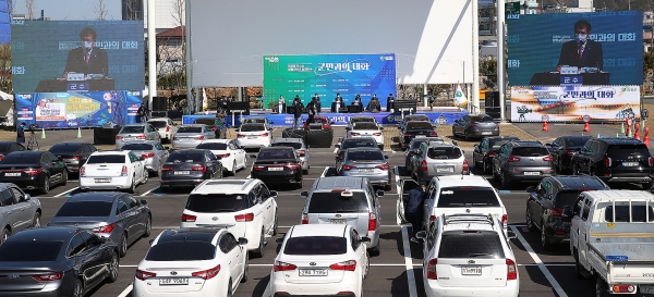 하루에 3부로 나눠 진행하는 군민과의 대화에 참석하는 주민들은 차량 한 대 당 4명을 최대인원으로 자동차극장에서 영화를 보는 형식으로 참여하게 된다.