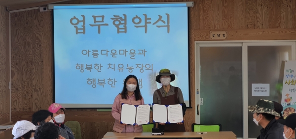 양 기관은 협약을 통해 아름다운마을의 공동생활 장애인들과 성내면 외옥마을의 주민들이 사회적농장에서 작물을 재배하며 정신적·신체적 건강을 증진하고 상호 교감하는 시간을 갖게 된다.