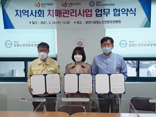 [국회의정저널] 광양시 치매안심센터는 지난 24일 전라남도광역치매센터, 광양시공립노인전문요양병원과 교류 협력을 통한 공동발전을 도모하는 협약을 체결했다.