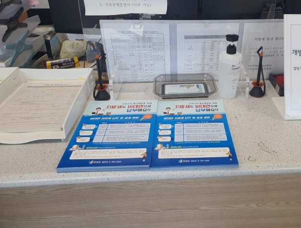 [국회의정저널] 금산군은 지난 25일 코로나19 예방을 위해 지방세를 비대면으로 납부하는 방법을 안내하는 전자고지 및 자동납부 홍보물을 제작해 금산군청, 읍·면사무소 등 민원실에 배치했다.