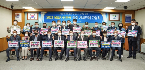 시는 지난 25일 사회단체, 상인회 대표 25명이 참석한 가운데 ‘2021년 목포사랑운동 참여 사회단체 간담회’를 개최하고 목포사랑운동의 필요성과 그간의 성과, 2021년도 목포사랑운동추진 방향 등을 공유하며 선도적인 동참을 당부했다.