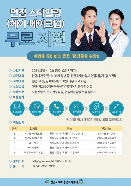 청년구직자에게 헤어와 메이크업 스타일링을 지원하는 이번 사업은 천안 청년구직자들의 경제적 부담 경감과 성공적인 취업 지원을 위해 마련됐다.