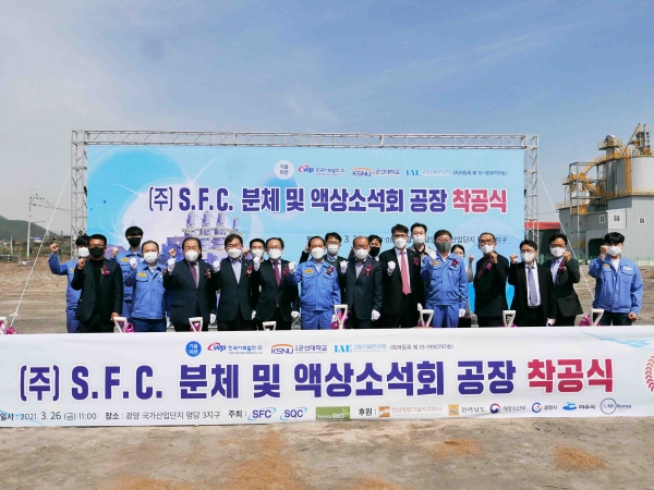 [국회의정저널] 광양시는 지난 26일 광양국가산단 내 굴껍데기를 재활용하는 ㈜에스에프씨가 분양 계약 완료 후 명당3지구 산업단지에서 착공식을 가졌다고 밝혔다.