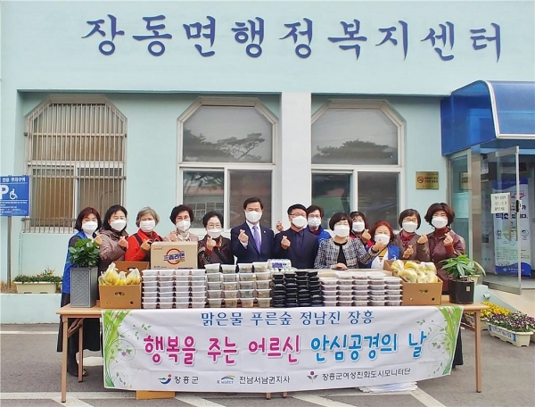 [국회의정저널] 장흥군과 장흥군여성친화도시모니터단은 지난 30일 장동면 결식 우려 어르신 가정을 방문해 ‘행복을 주는 어르신 안심·공경의 날’ 행사를 가졌다.