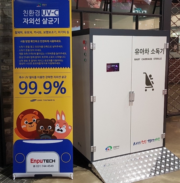 [국회의정저널] 천안시는 코로나19와 세균, 바이러스 감염 예방을 위해 다중이용시설 3개소에 ‘유아차 살균 소독기’를 설치했다고 밝혔다.