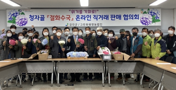 이에 지난 29일 강진군 수국 재배 농가 30여명이 참석한 가운데 청자골 절화수국 온라인 직거래 판매 협의회를 개최하고 수국 판매행사를 추진하기로 결정했다.