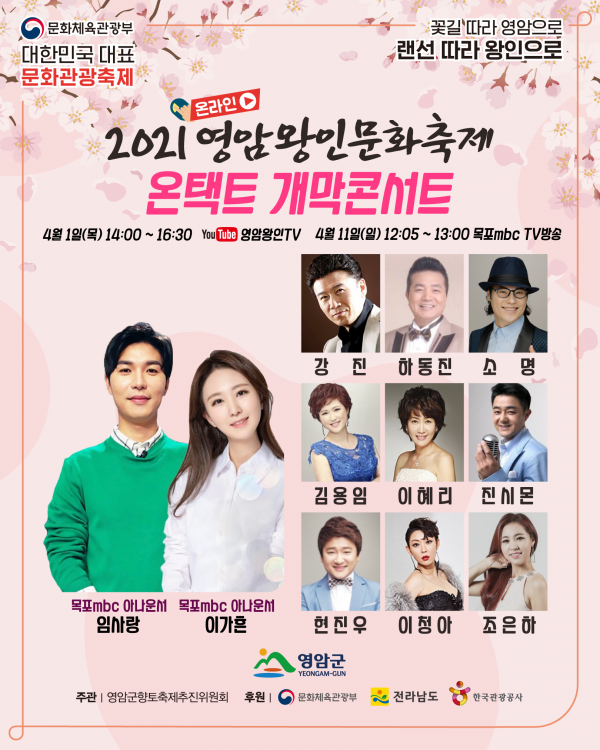 영암군 향토축제추진위원회는 16일간의 온라인 축제 개막을 알리는 ‘온택트 개막콘서트’를 개최한다.
