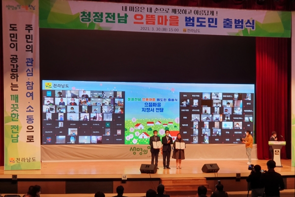 전라남도는 지난 30일 전남도청 김대중강당에서 개최된‘청정전남 으뜸마을 범도민 출범식’을 개최하고 사업 참가 마을을 발표했다.