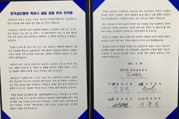 전남시군의회의장협의회도 한국섬진흥원 목포 유치 지지를 선언했다.