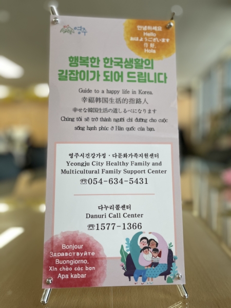시는 다문화 가족의 한국생활에 잘 적응하기 위한 다양한 서비스를 제공하고 있는 영주시건강가정·다문화가족지원센터를 안내하는 미니 배너와 프로그램 안내를 위한 자료를 제작·배부했다.