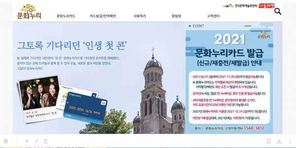 또한 신규로 발급받고자 하는 경우에도 거주지 기준 읍면동사무소, 문화누리카드 앱을 통해 발급 받을 수 있다.