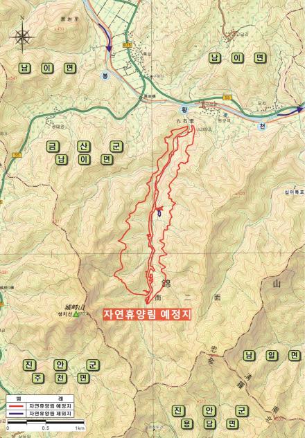 휴양림은 총사업비 161억원을 투입해 오는 2024년까지 남이면 구석리 일원 85만㎡ 규모로 방문자 안내센터, 숲속의집, 산림문화휴양동, 주차장 시설 등을 조성할 예정이다.