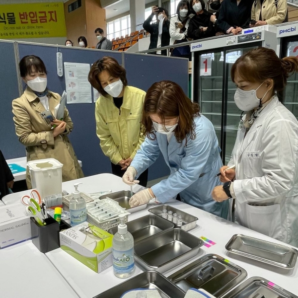 훈련 참가자는 예방접종센터에 들어서기 전부터 거리두기를 철저히 지켰으며 접종 후 중증 이상반응 대상자 발생 등 돌발상황에 대비하며 훈련을 진행했다.