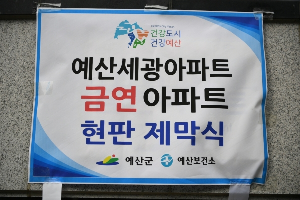 [국회의정저널] 예산군은 예산읍 소재 세광엔리치타워아파트를 제4호 금연아파트로 지정하고 1일 현판식을 가졌다.