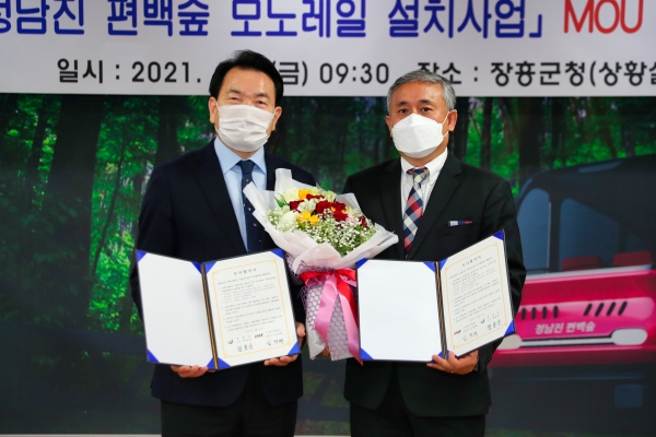 [국회의정저널] 전남 장흥군은 4월 2일 에이엠티와 군 대표 관광지인 우드랜드 일원에 모노레일을 설치하는 투자협정 양해각서를 체결했다.