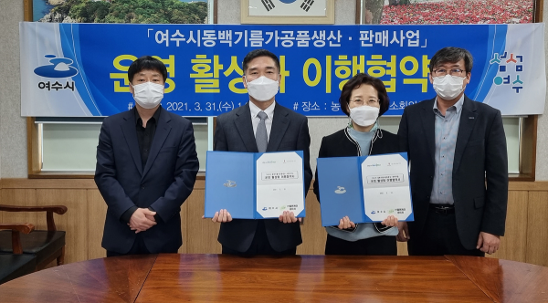 이번 협약으로 2023년까지 여수시는 동백종자 수매업무를 맡고 ㈜엘엔케이네이처는 동백기름 착유부터 완제품 생산과 판매를 담당하게 됐다.