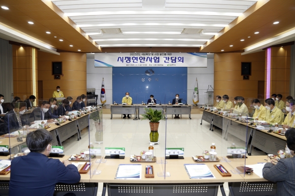 [국회의정저널] 상주시는 4월 2일 시청 대회의실에서 지역 국회의원과의 국비확보 및 시정 발전을 위한 시정 현안사업 간담회를 개최했다.