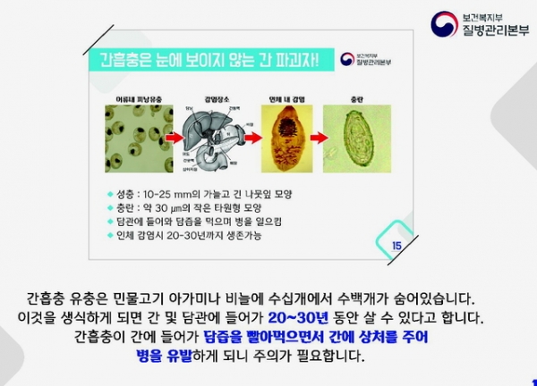 간흡충은 사람의 몸속에 들어와 길게는 20년에서 30년까지 생존하며 여러가지 증상을 일으킨다.