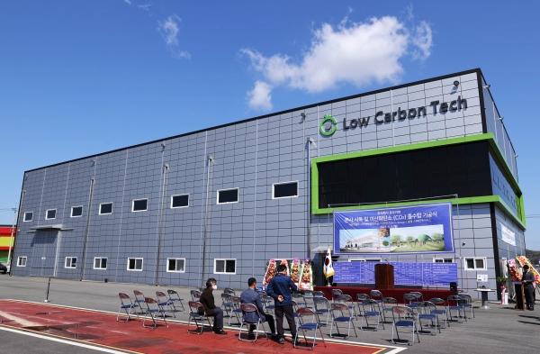 이산화탄소 흡수탑은 로우카본의 혁신 기술인 CO2 전기·화학적 변환 촉매를 활용해, 대기중의 이산화탄소 90% 이상을 포집할 수 있는 이산화탄소 포집 장치로 생산시설 주변 부지에 설치공사를 오는 5월 완료할 예정이다.