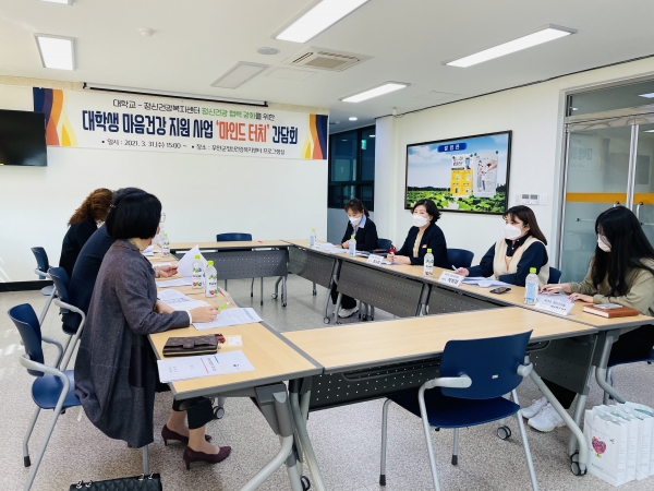 [국회의정저널] 무안군은 지난달 31일 정신건강복지센터 프로그램실에서 코로나19 장기화로 지친 대학생들의 마음건강 회복을 위해 대학생 마인드 터치 운영 간담회를 개최했다고 밝혔다.