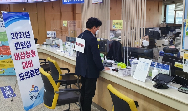 영광군은 지난 2월, 종합민원실장을 반장으로 해 민원실 전 직원을지휘통제, 초기대처, 민원인 대피, 피해공무원 구조팀으로 나눠 비상상황 대응반을 편성하고 각 팀의 임무숙지와 상황 연습을 위해 민원실 비상상황 대비 모의훈련 계획을 수립한 바 있으며 매년 2회씩정기적으로 모의훈련을 실시해 나갈 계획이라고 전했다.