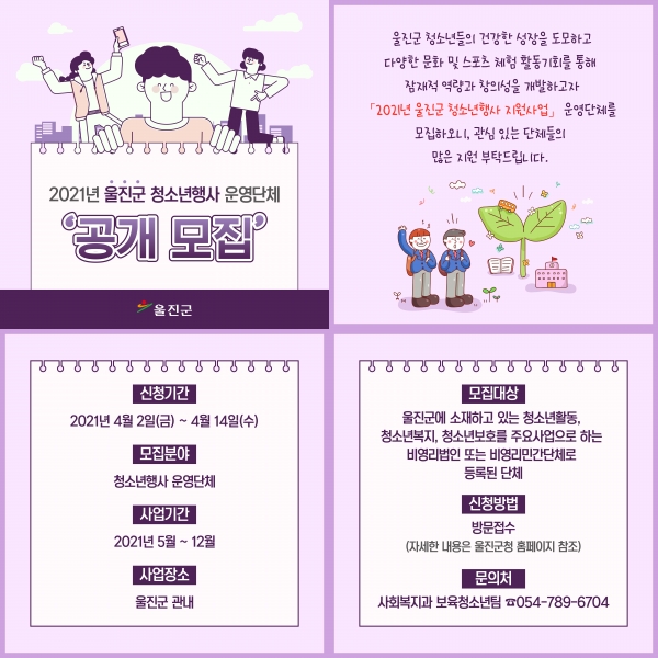 울진군, 2021년 청소년행사 운영단체 모집