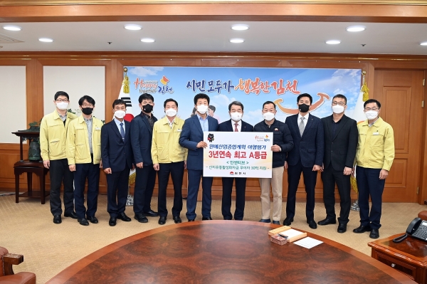 이로써 김천시는 3년 연속 최고 A등급 획득으로 인해 관내 통합마케팅조직 산지유통활성화자금 무이자 30억 추가지원과 더불어 산지관련 국비사업 우선선정, 산지조직화 언론홍보 기회 등의 인센티브를 부여받게 됐다.