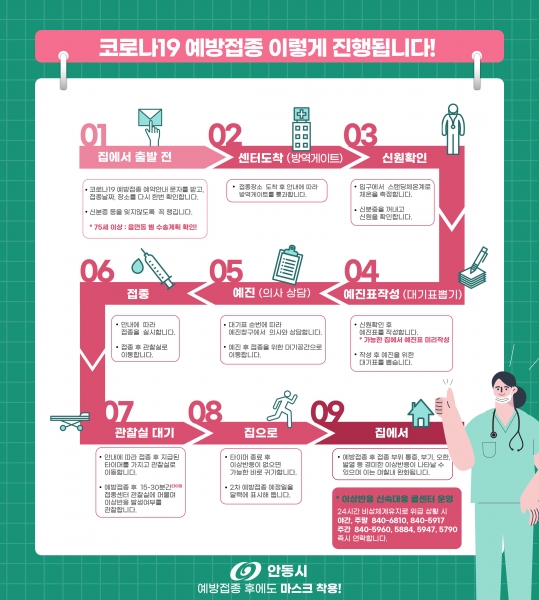 권영세 안동시장은 “코로나19 백신접종에 적극적으로 참여해 소중한 일상을 회복하는 출발점이 되길 바란다”며 “안전하고 차질 없는 예방접종을 위해 빈틈없는 준비에 최선을 다하겠다”고 말했다.