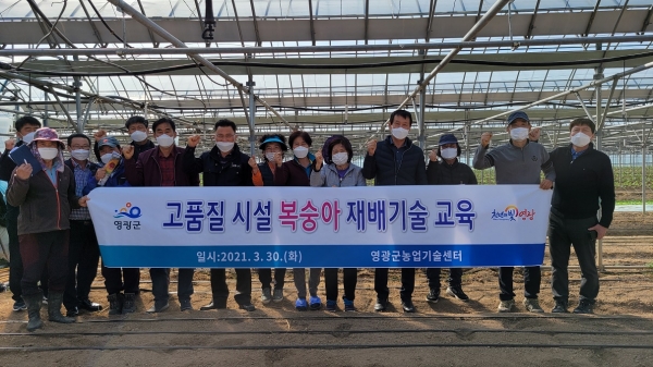 [국회의정저널] 영광군은 지난달 30일 복숭아 연구회원을 대상으로 “시설복숭아 재배기술 현장교육”을 실시했다고 밝혔다.