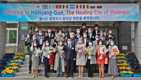 코로나19 확산 방지를 위해 방역수칙을 철저하게 준수한 가운데 이날 오후 열린 환영행사에는 주한 공관장을 비롯해 서춘수 함양군수, 서상태 함양경찰서장, 엑스포 조직위 관계자 등이 참석해 방문단을 환영했다.