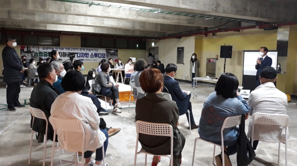 한 예로 군은 4월 한 달 동안 농협 지하 공간 활용을 위한 워크숍을 4차에 걸쳐 진행했는데, 1차 워크숍은 지역의 문화예술인을 대상으로 2차는 지역 청소년, 3차는 30 ~ 40대 주부를 대상으로 진행했고 지난 22일에는 그동안 워크숍 참여자들과 청년들이 참여해 유형별 토론과 그 결과를 종합해 발표하는 형식의 공동워크숍을 진행했다.