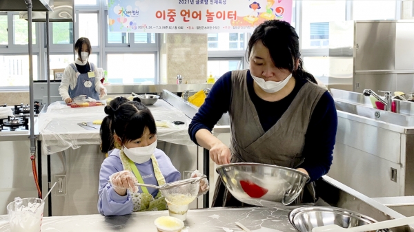 [국회의정저널] 합천군 건강가정다문화가족지원센터는 지난 4월 24일부터 7월 3일까지 매주 토요일 총 10회에 걸쳐 키즈 베이킹을 접목한 이중 언어놀이터 교육을 다문화가정 자녀 10명을 대상으로 실시 한다.