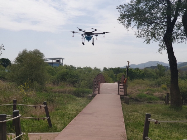 이와 더불어 차량 진입이 어려운 철새도래지 내부 산책로 등에는 드론을 활용해 소독해 철새 북상 이후 남아있는 잔존 바이러스까지 박멸한다.