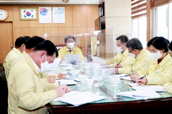 오태완 의령군수 주재로 군수실에서 열린 이날 대책회의에는 부군수, 국장, 재난대책본부 실무반 부서장 등 20여명이 참석한 가운데 최근 지속적으로 증가하고 있는 코로나19 확진자 수의 증가세를 반전시키기 위한 ‘코로나19 특별방역관리 주간’의 운영 취지와 세부 추진사항에 대해 설명하고 참석한 부서장들과 다양한 의견을 나누었다.