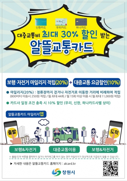창원시 “알뜰교통카드로 교통비 최대30% 할인 받으세요”