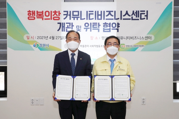 그동안 지역주민들이 센터 운영을 위해 추진한 역량강화사업 영상을 시작으로 행복의창 마을관리 사회적협동조합과 창원시의 커뮤니티비즈니스센터 위·수탁 협약식, 현판 제막식 등의 순으로 이뤄졌다.