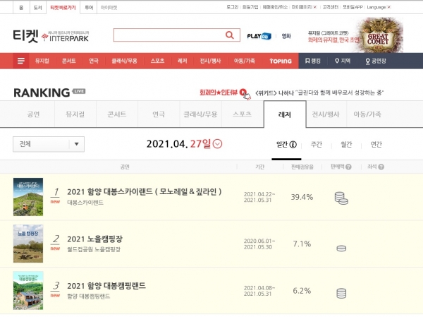 [국회의정저널] 함양대봉산휴양밸리 대봉스카이랜드가 지난 4월 21일 개장 이후 연일 매진 고공 행진을 보이며 인터파크 레저 분야 판매점유율 1위를 기록하는 등 체류형 휴양치유 복합관광단지로서의 면모를 과시하고 있다.