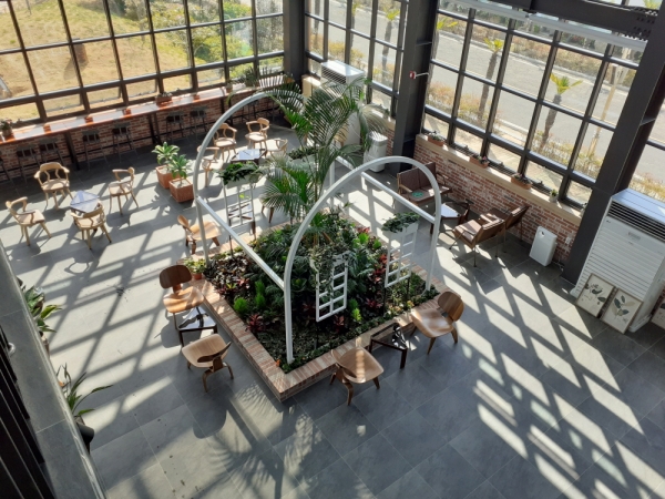 NASA가 지정한 최고의 실내공기 정화 식물인 아레카야자를 중심목으로 해 미니정원, 플랜트월, 공기정화식물, 이끼월 등에는 미세먼지를 제거하고 쾌적함을 위해 다양한 식물들이 자라고 있다.
