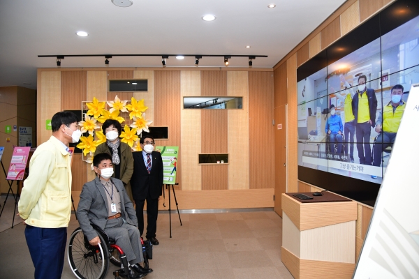 아울러 편의시설 홍보 전시와 더불어 거제시장애인단체총연합회에서는 2020년도에 공모해 선정된‘장애인식개선 UCC’를, 거제시장애인복지관에서는 2021년 제작한 ‘릴레이 송 하모니’를 상영하며 “더불어 행복한 복지 거제”를 만들기 위한 시민들의 다양한 모습을 볼 수 있는 시간을 가졌다.