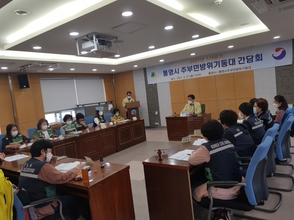 [국회의정저널] 통영시는 지난 27일 시청 2청사 회의실에서 2021년 1/4분기 주부민방위기동대 간담회를 개최했다.