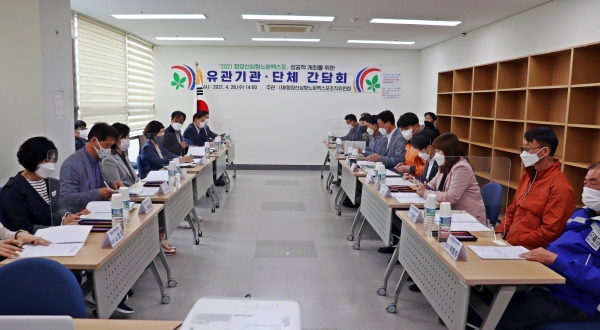 [국회의정저널] 함양산삼항노화엑스포조직위원회는 28일 종합사회복지관 1층 회의실에서 엑스포조직위와 함양경찰서 등 유관기관·단체 관계자 22명이 참석한 가운데 엑스포 성공개최를 위한 간담회를 개최했다고 밝혔다.